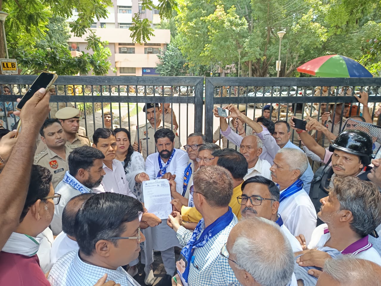 इस मौके पर वीरेंद्र सिंह ,रवि जाटव , पंकज शर्मा, गंगा शरण, बबलू , बाबूलाल सेन , प्रमोद सागर , मुनव्वर चौधरी ,ओमवीर मौजूद रहे। इसके अलावा कालका गढ़ी चौक से अंबेडकर रोड होते हुए आजाद समाज पार्टी के कार्यकर्ताओं ने भी पैदल मार्च निकाला। कार्यकर्ता सीधे कलेक्ट्रेट पहुंचे।
