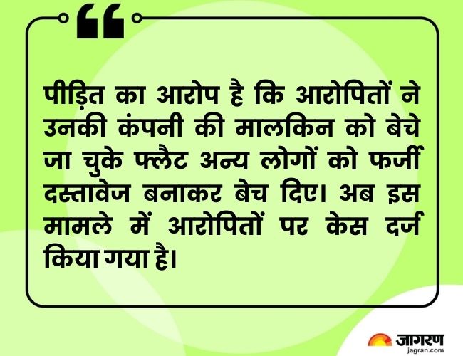 पीड़ित का आरोप है कि आरोपितों ने उनकी कंपनी की मालकिन को बेचे जा चुके फ्लैट अन्य लोगों को फर्जी दस्तावेज बनाकर बेच दिए। अब इस मामले में आरोपितों पर केस दर्ज किया गया है। सूरजपुर स्थित मैसर्स मेट्रो इंफोटेक का शाखा कार्यालय कविनगर में है।