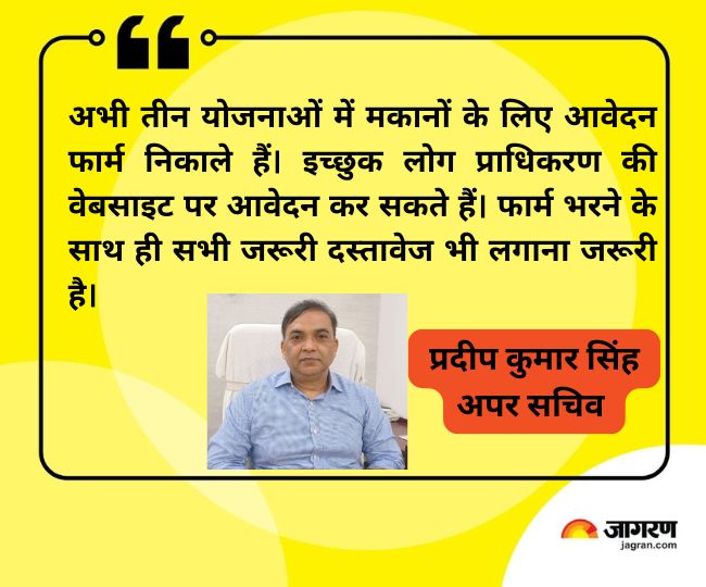 अपर सचिव प्रदीप कुमार सिंह ने बताया कि अभी तीन योजनाओं में मकानों के लिए आवेदन फार्म निकाले हैं। इच्छुक लोग प्राधिकरण की वेबसाइट पर आवेदन कर सकते हैं। फार्म भरने के साथ ही सभी जरूरी दस्तावेज भी लगाना जरूरी है।