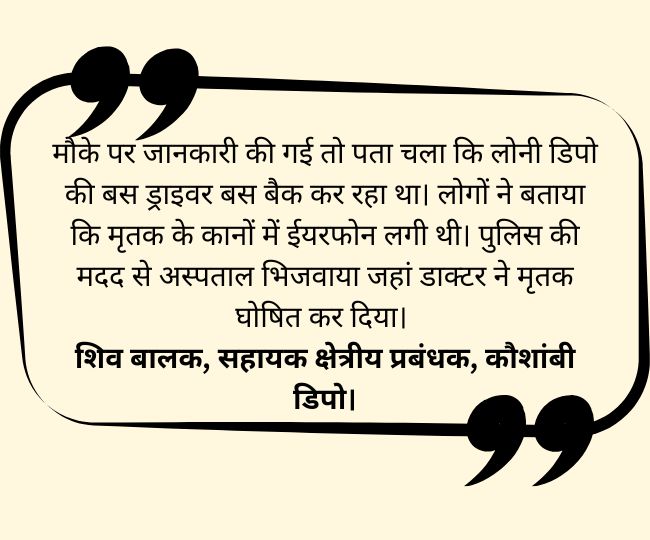 अभिषेक का बृहस्पतिवार को कोई पार्सल कौशांबी पोस्ट आफिस में आया था। दिल्ली के मुखर्जी नगर से पार्सल लेने के लिए वह यहां आया था। बस अड्डे में गेट नंबर एक के पास कान में ईयरफोन लगाकार निकल रहा था। इसी दौरान बस अड्डे में लोनी डिपो की रोडवेज बस का चालक बस को बैक करने लगा।