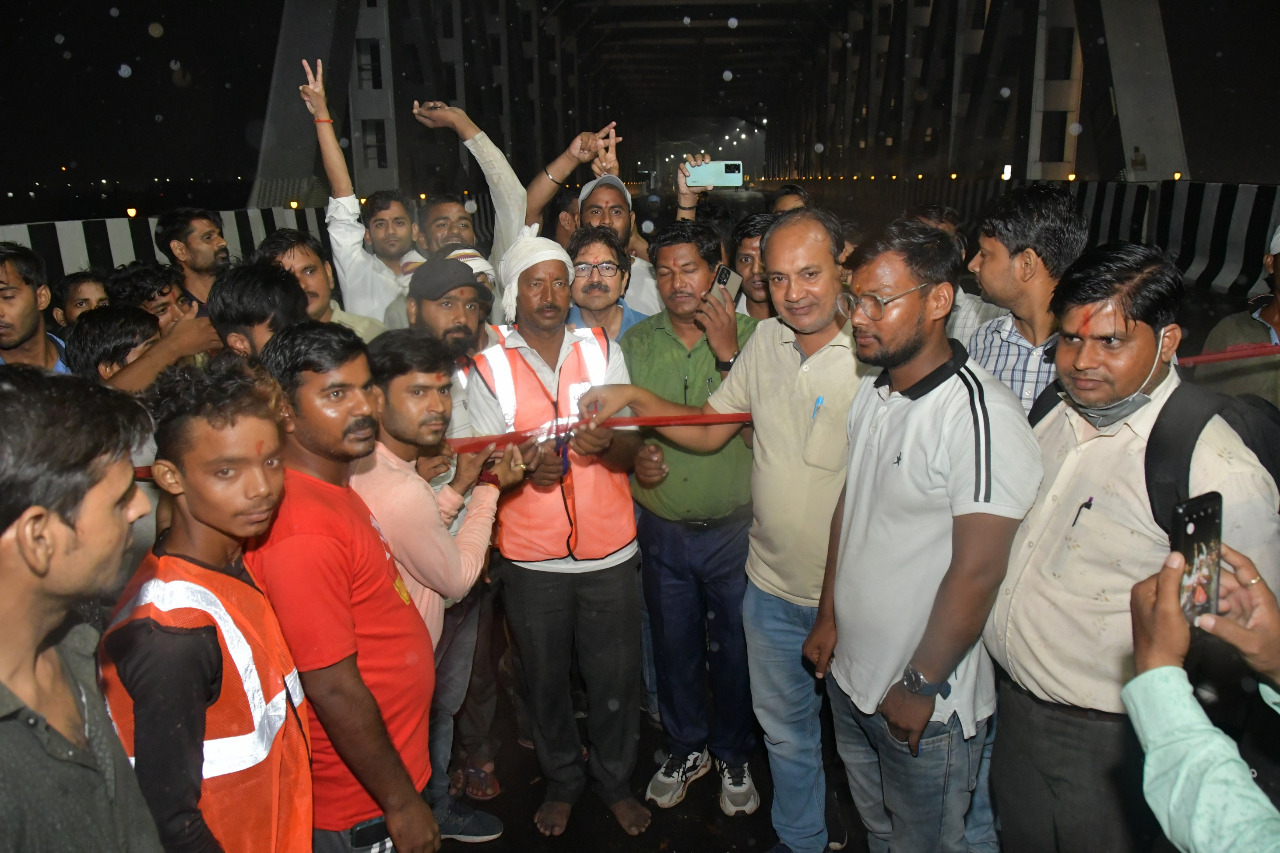 चार लेन का लोड टेस्ट होने के बाद उद्घाटन की तैयारी कामगारों ने ऐसे की, मानो कोई उत्सव हो। उनमें उत्साह देखने को मिला। एनएचएआइ व रेलवे के साथ ट्रैफिक पुलिस के अधिकारियों ने भी राहत की सांस ली।