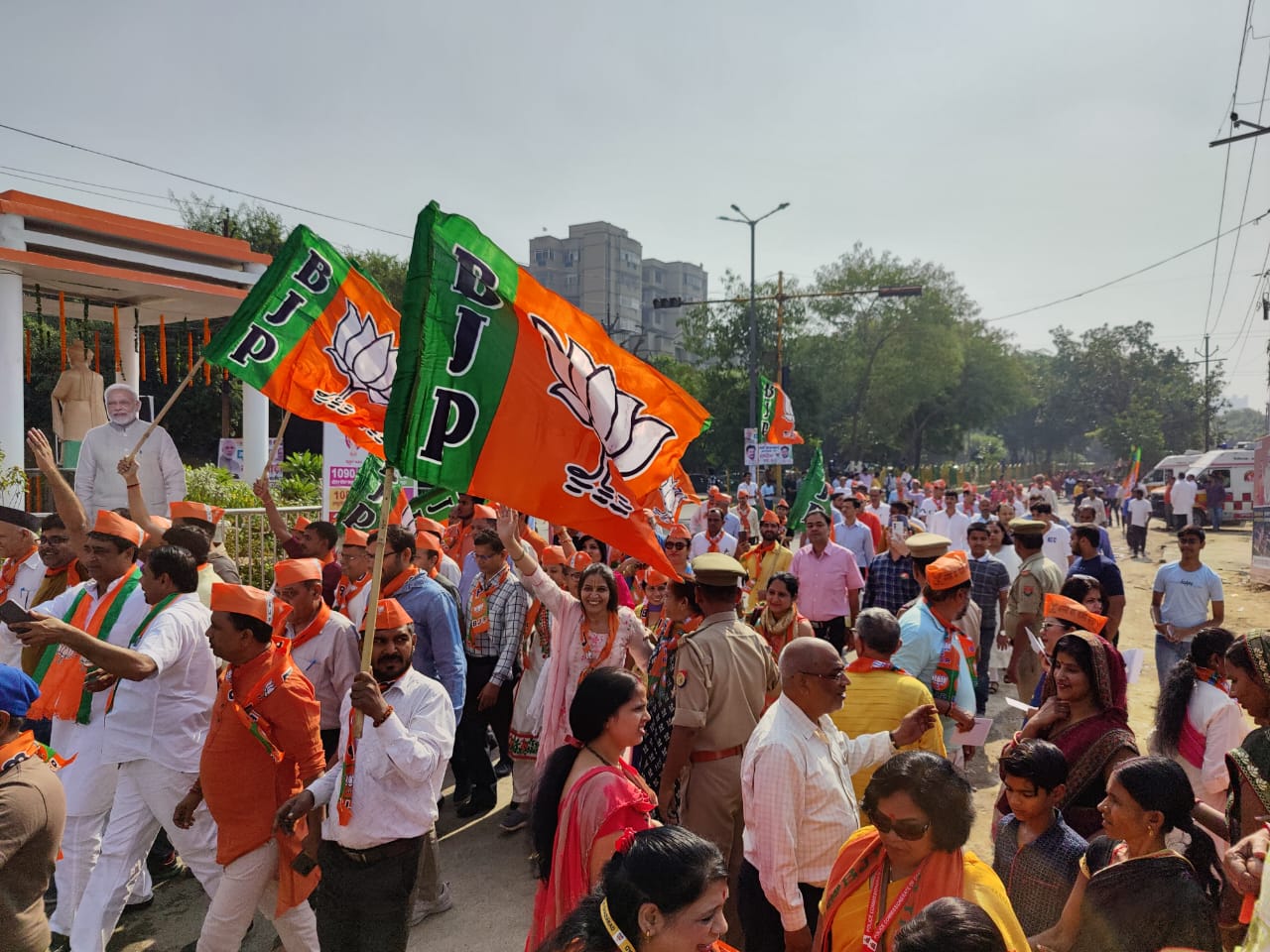 #WATCH | Prime Minister Narendra Modi greets the people gathered for his public rally in Sahibabad, Uttar Pradesh. pic.twitter.com/TtVMRXI7tP