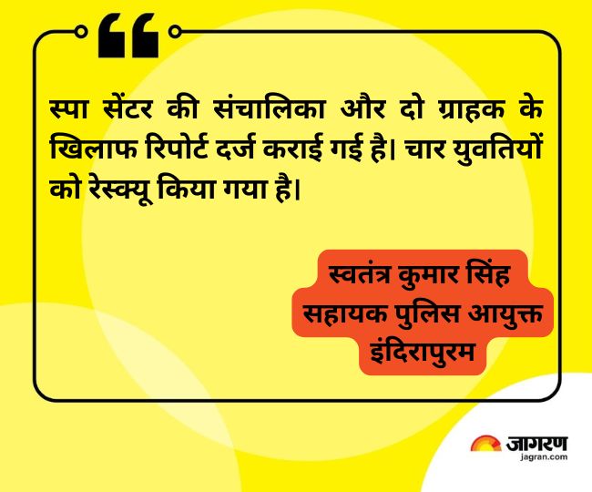 पूछताछ में युवतियों ने बताया कि नौकरी के नाम पर उन्हें यहां लेकर जबरन देह व्यापार कराया जा रहा था। लोक लाज के डर से उन्होंने कहीं शिकायत नहीं की। सहायक पुलिस आयुक्त इंदिरापुरम स्वतंत्र कुमार सिंह ने बताया कि उनकी ओर से स्पा सेंटर की संचालिका और दो ग्राहक के खिलाफ रिपोर्ट दर्ज कराई गई है। चार युवतियों को रेस्क्यू किया गया है।