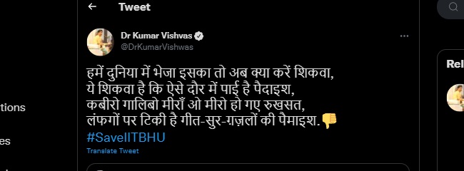 इससे पहले नवंबर, 2017 में बनारस हिंदू विश्वविद्यालय में एक विवाद को लेकर कुमार विश्वास ने इन्हीं पंक्तियों में थोड़ा बदलाव कर लिखा था, जो इस तरह है।