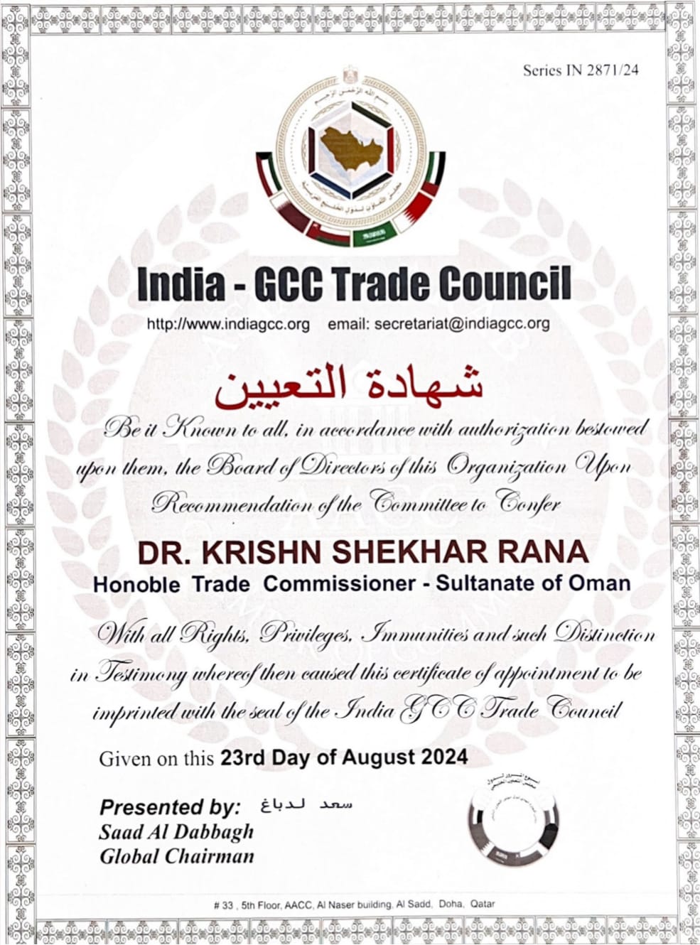 आरोपी ने प्रेस वार्ता में कहा कि उसे इंडिया जीसीसी ने हाई कमिश्नर बनाया है। ऐसे में उसे नहीं पता यह गलत है या सही है। उसे कहीं रोका भी नहीं गया। आरोपी ने स्वयं को बेकसूर बताया। आरोपी एमएससी, पीएचडी और डीएससी (डॉक्टर ऑफ साइंस) है।