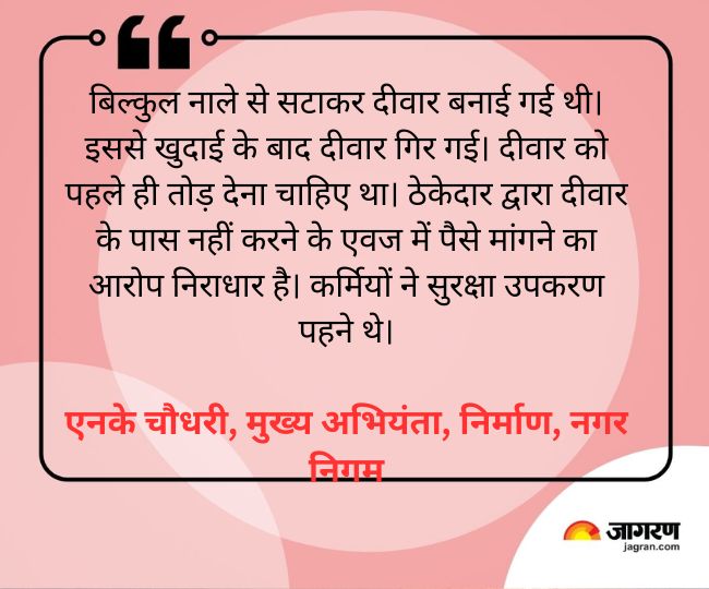 इसके बाद बुलडोजर को बुलाकर दीवार को हटाकर देखा गया, जिसमें कोई और कामगार दवा हुआ नहीं मिला। वहीं, लोगों ने बताया कि कामगारों ने कोई सुरक्षा उपकरण नहीं पहना हुआ था।