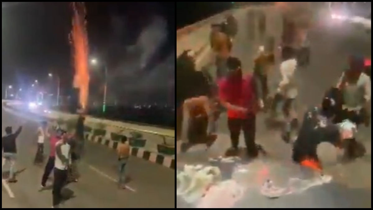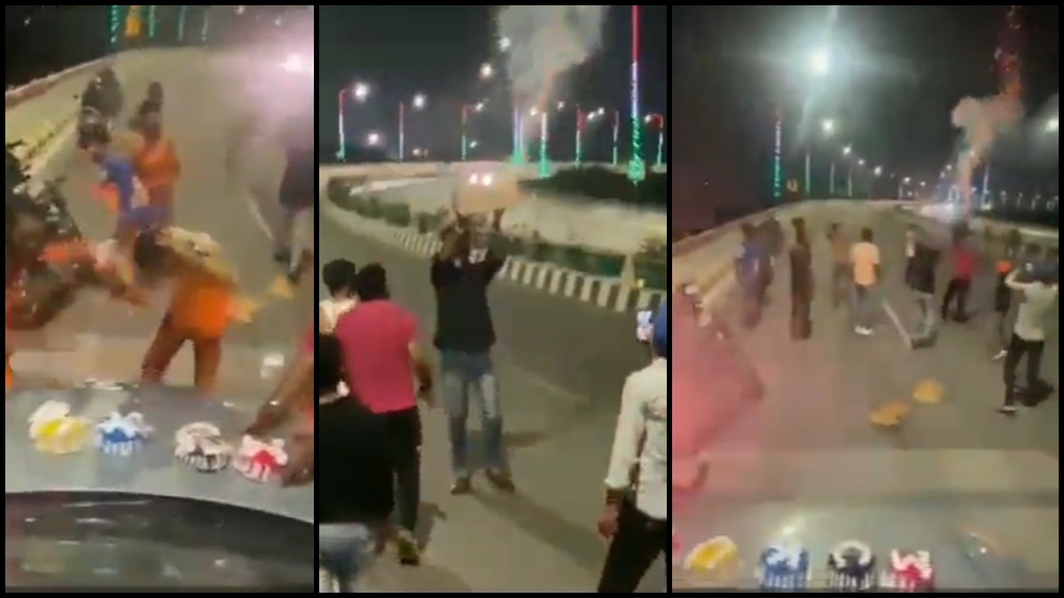 कार के बोनट पर चार केक रखे थे और एक युवक आतिशबाजी कर रहा था। तेज म्यूजिक बजाकर युवक डांस कर रहे थे। उसके बाद एक युवक ने कार के बोनट पर रखे केकों को काटा और फिर पूरी सड़क को घेरकर केक एक-दूसरे पर फेंकते हैं।