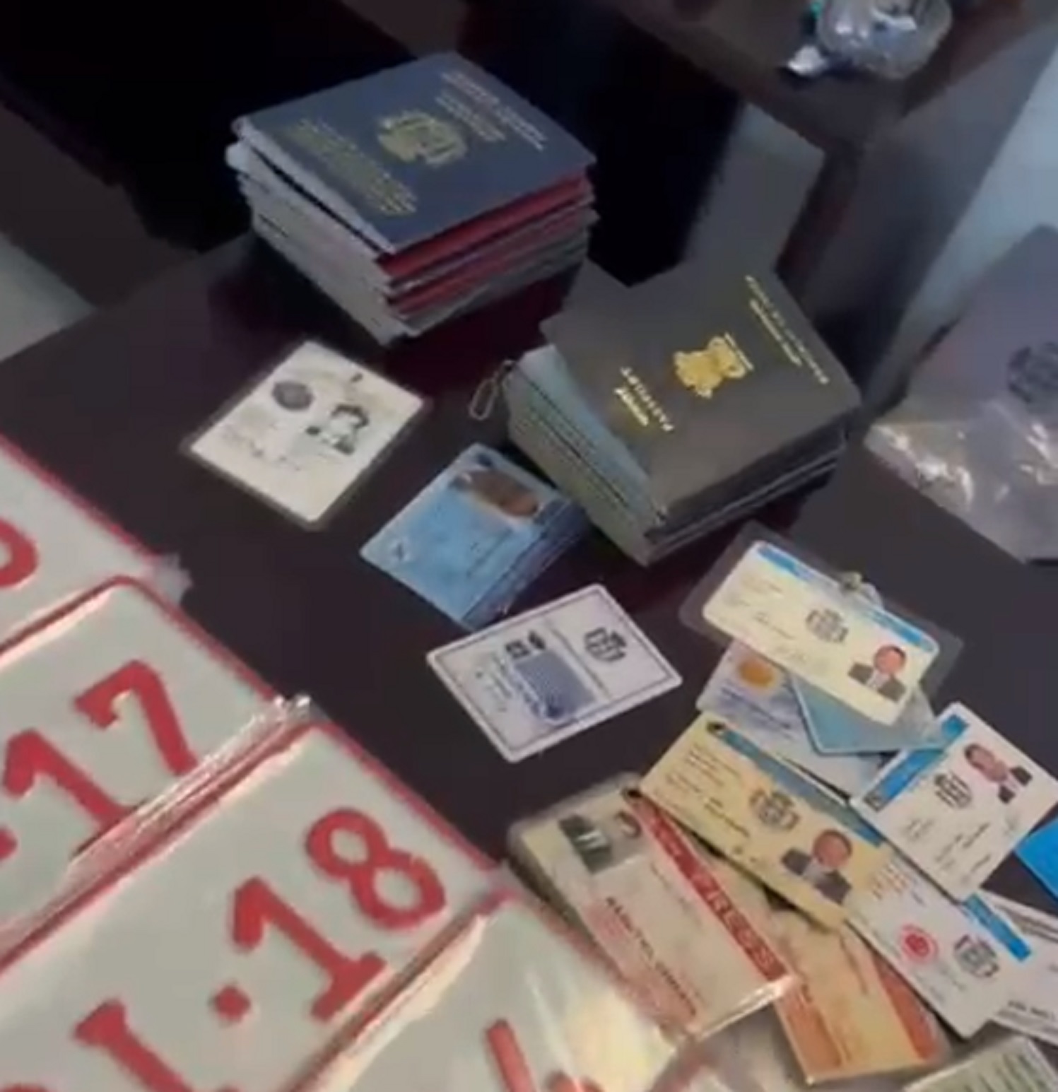 हर्षवर्धन जैन के नाम के कूटरचित दो प्रेस कार्ड, एक डायरी, कई बैंक खातों और लोगों के फोन नंबर, पेनड्राइव, दो पैन कार्ड, विदेश मंत्रालय की कूटरचित मोहर लगे दस्तावेज, आधार कार्ड, वोटर आइडी कार्ड, डिप्लोमेट कार्ड, अवैध सात पासपोर्ट, तुर्किये की मुद्रा लीरा, यूएई की मुद्रा दिरहम, यूरो, डालर, पाउंड, 34 फर्जी मोहरें, 12 लग्जरी घड़ियां, लैपटाप और मोबाइल बरामद हुआ है। कैश और विदेशी मुद्रा की सूचना आयकर विभाग को दी गई है।