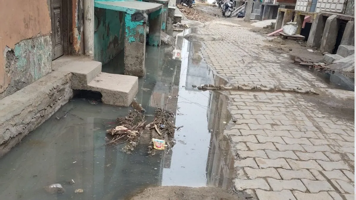 गाजियाबाद की पूर्वी जवाहर नगर कॉलोनी में भरा नाली का पानी। जागरण