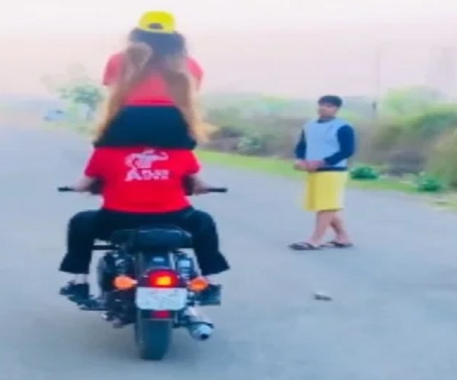 इंटरनेट मीडिया पर 2 युवतियों का वीडियो वायरल हो रहा है। इसमें एक युवती बुलेट मोटरसाइकिल पर स्टंट कर रही हैं जबकि दूसरी युवती दोपहिया बुलेट चला रही है। इस दौरान दूसरी युवती के कंधे पर बैठी है।