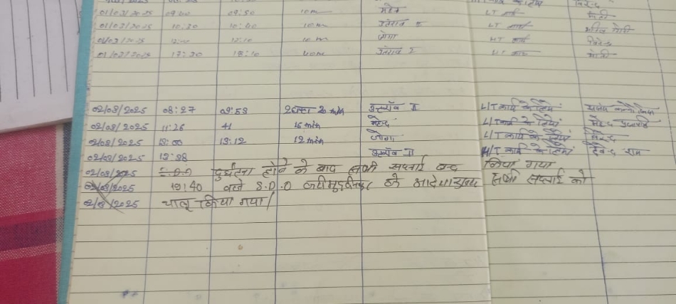 विद्युत उपकेंद्र करीमुद्दीनपुर में रजिस्टर जिसमे शट डाउन की सूचना होती है दर्ज