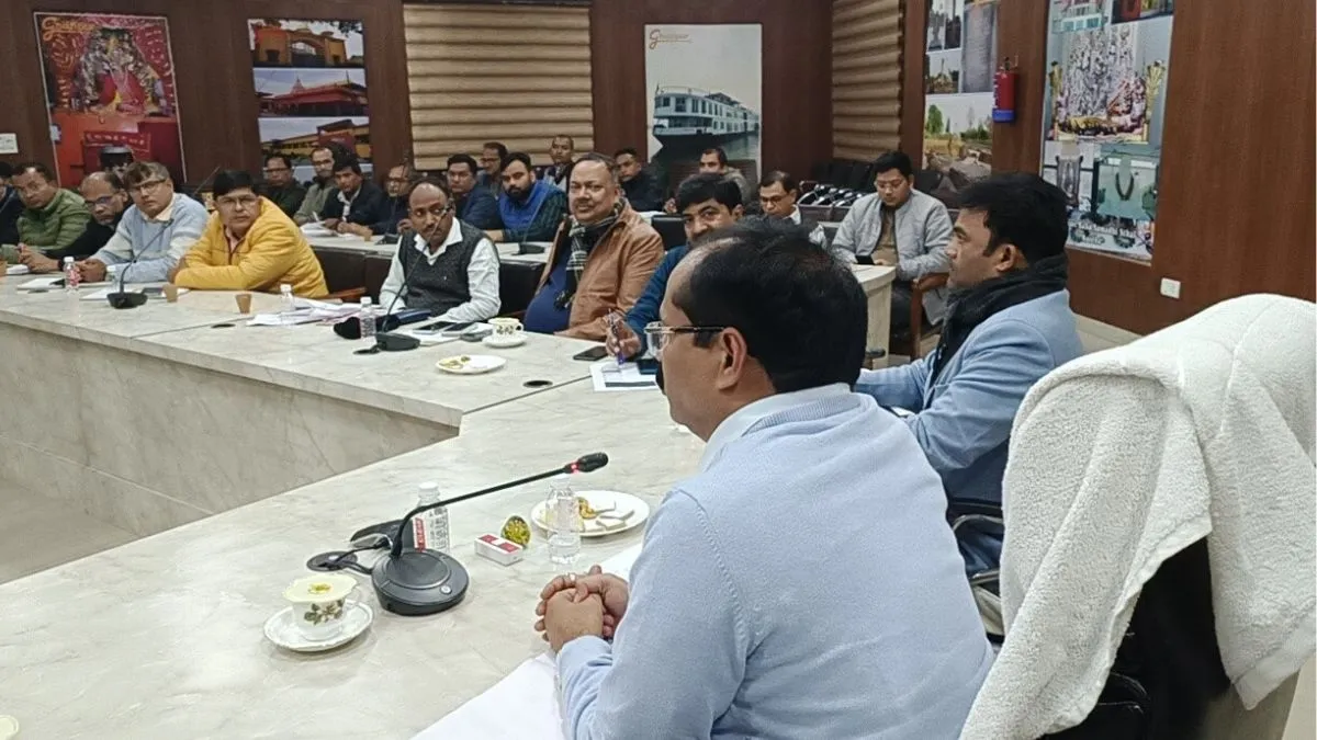 गोआश्रय स्थलों के संबंध में जनपद स्तरीय अनुश्रवण, मूल्यांकन एवं समीक्षा समिति की बैठक कलेक्ट्रेट सभागार में लेते मुख्य विकास अधिकारी संतोष कुमार वैश्य।