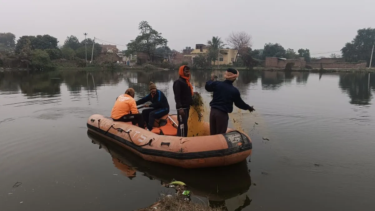 गाजीपुर में तिहरे हत्याकांड की जांच: पोखरे से हथियार निकालने का काम पंप खराब होने से रुका