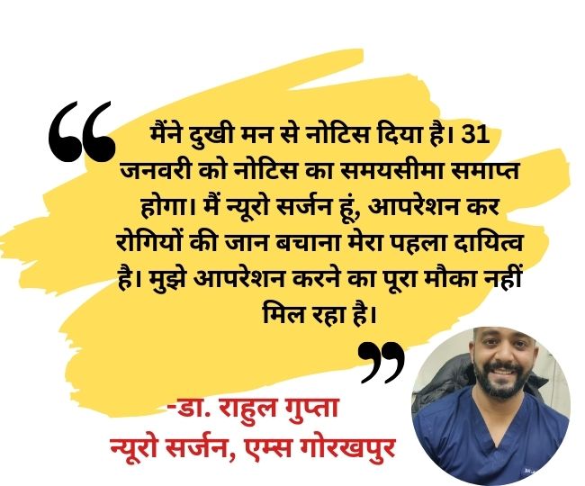 डा. राहुल गुप्ता ने इस्तीफा का नोटिस दिया है। अभी उनका इस्तीफा स्वीकार नहीं किया गया है।-डा. अरूप मोहंती, मीडिया प्रभारी, एम्स गोरखपुर