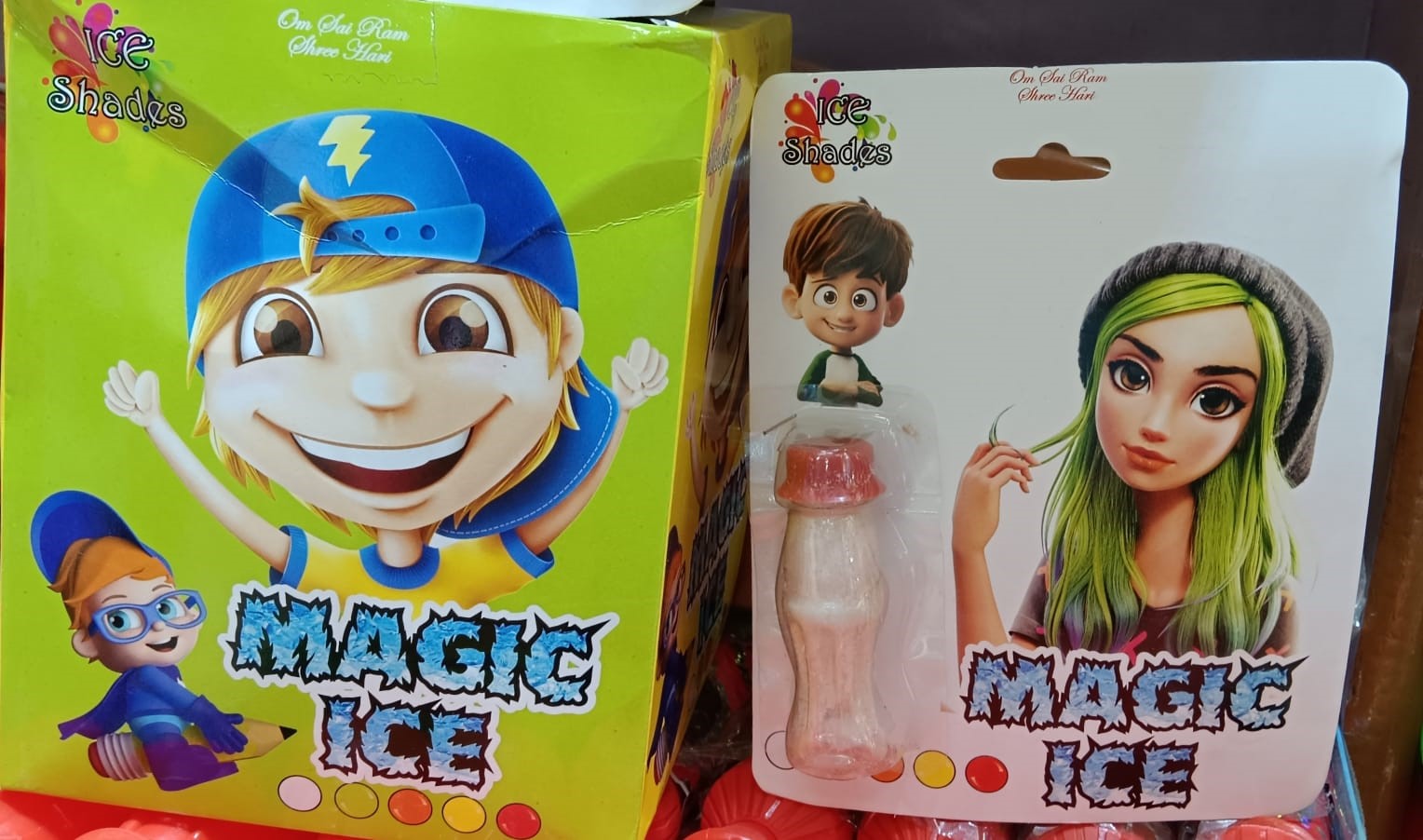 मैजिक आइस के पैकेट में रखी शीशी में रखे पावडर को ग्लास में रखने के साथ ही जैसे ही उसमें पानी डाला जाएगा रंग बर्फ की तरह दिखने लगेगा। यह 30 से 35 रुपये प्रति पीस में उपलब्ध है।