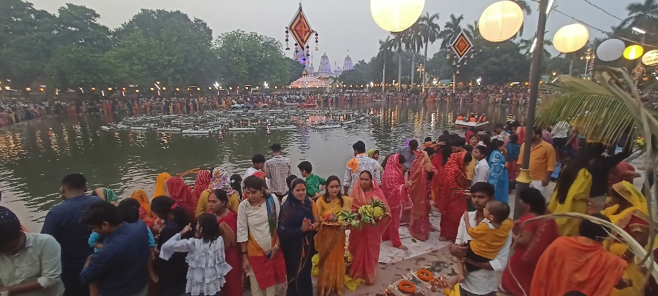 वेदियां दीपों से आलोकित हो रही हैं। कभी छठ माता को, तो कभी सूर्य देव को अगरबत्ती दिखाई जा रही है। कोई गंगा मइया को दीप समर्पित कर रहा है, तो कोई अगाध आस्था को चुल्लू में समेट कर सिर-माथे पर सजाने में लगा है। जिस ओर भी दृष्टि जाती है वहां प्रकृति प्रेमी सनातनी संस्कृति की आभा इसी तरह चटख होकर नभ और जल को एकीकार करती दिखती है।