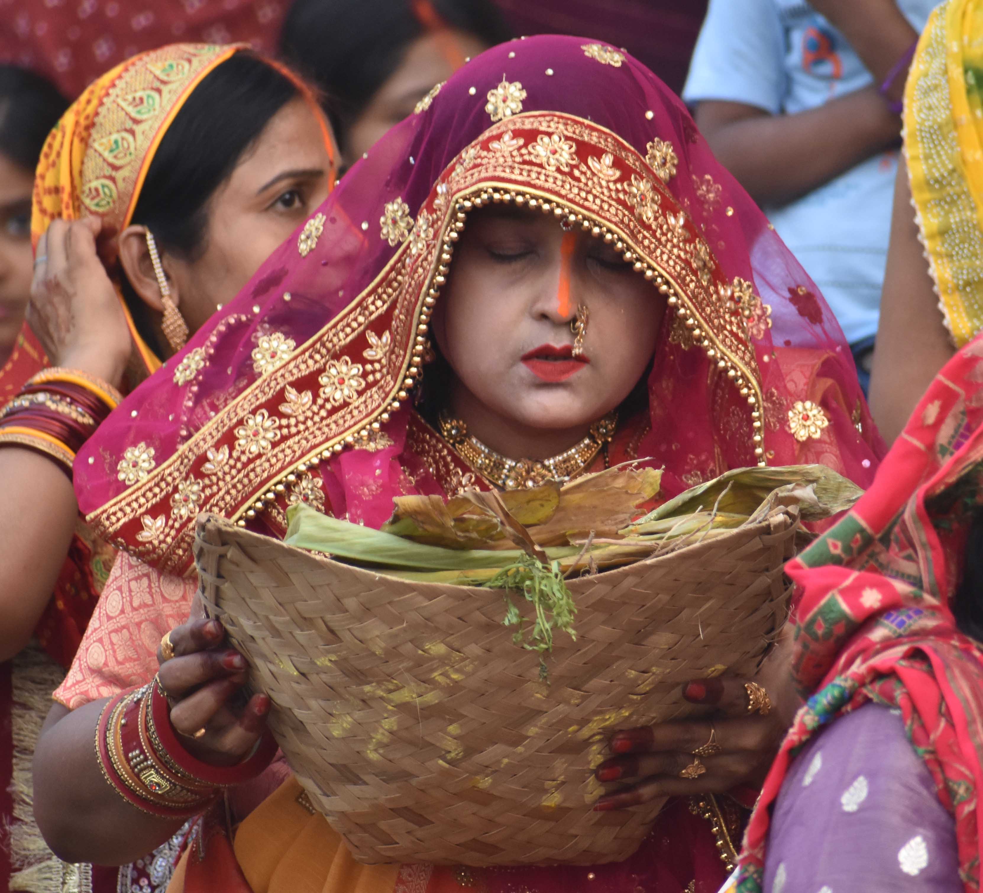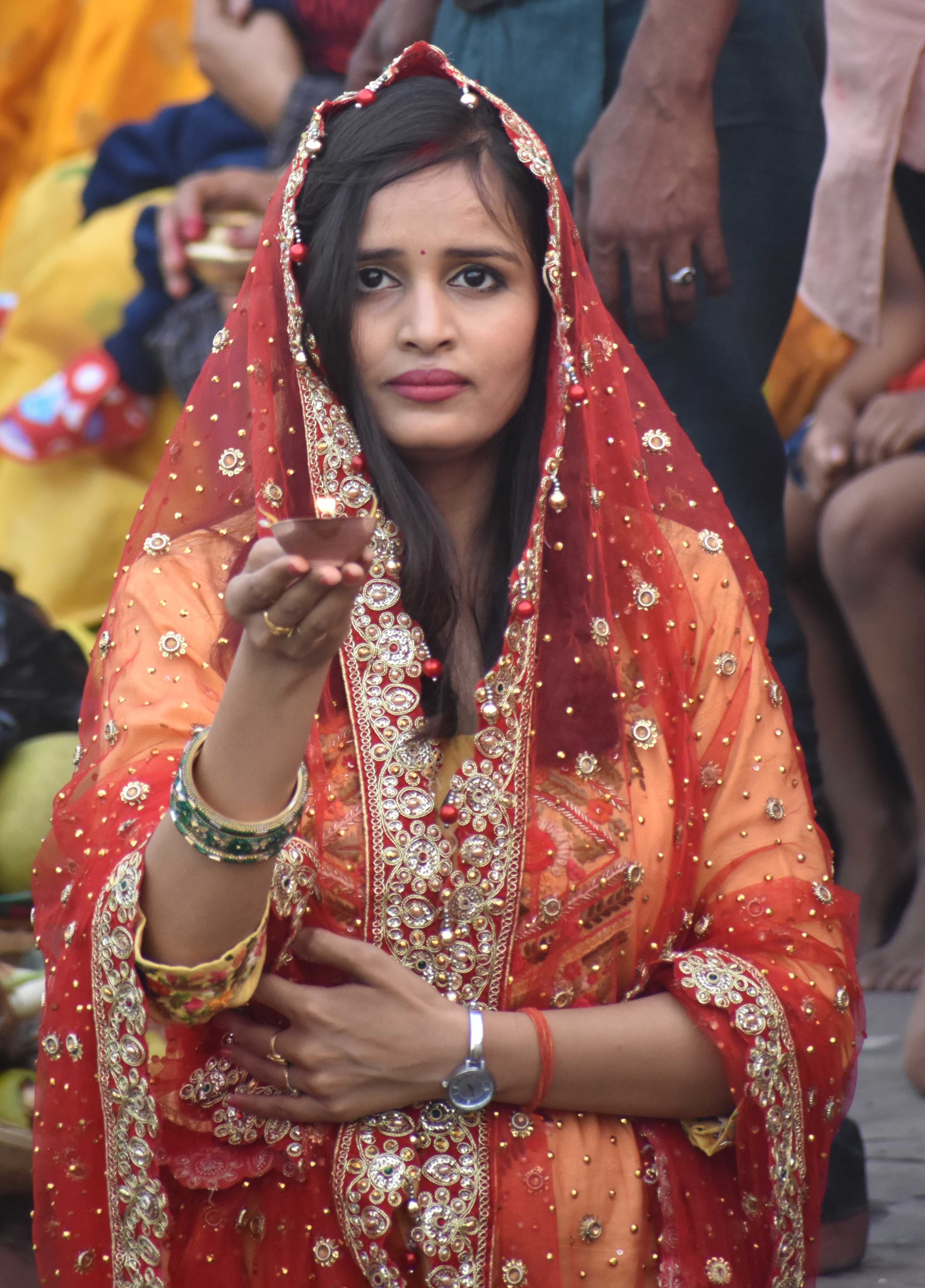 अस्ताचलगामी को पूजने की बेला निकट आती है तो ऐसी सुहागिनों को व्रत रखने वाली परिचित माताएं पारंपरिक रूप से सिंदूर लगाती हैं। नाक से पूरी मांग तक सिंदूर सजने के बाद वो भी हाथ जोड़ खड़ी हो जाती हैं। इधर, क्षितिज पर लालिमा बिखेर सूर्य देव अस्ताचलगामी होते हैं, उधर घाट पर अर्घ्य शुरू हो जाता है।