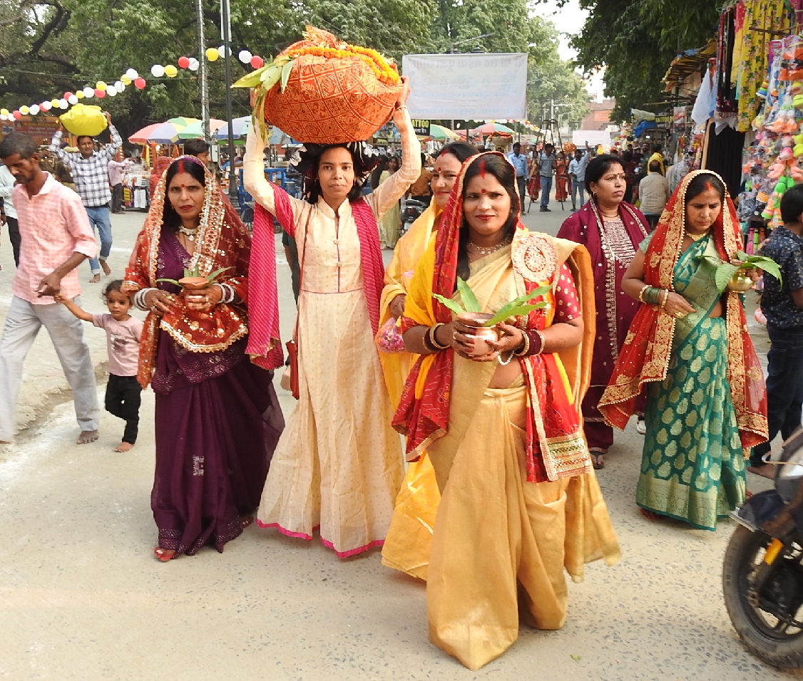 अनगिनत माताओं के व्रत-तप से सिंचित होकर फिर वह नयनाभिराम दृश्य सृजित होता है, जिसे निहारने के लिए सूर्यकुंड धाम के सामने फ्लाईओवर का किनारा लोगों से भर जाता है।