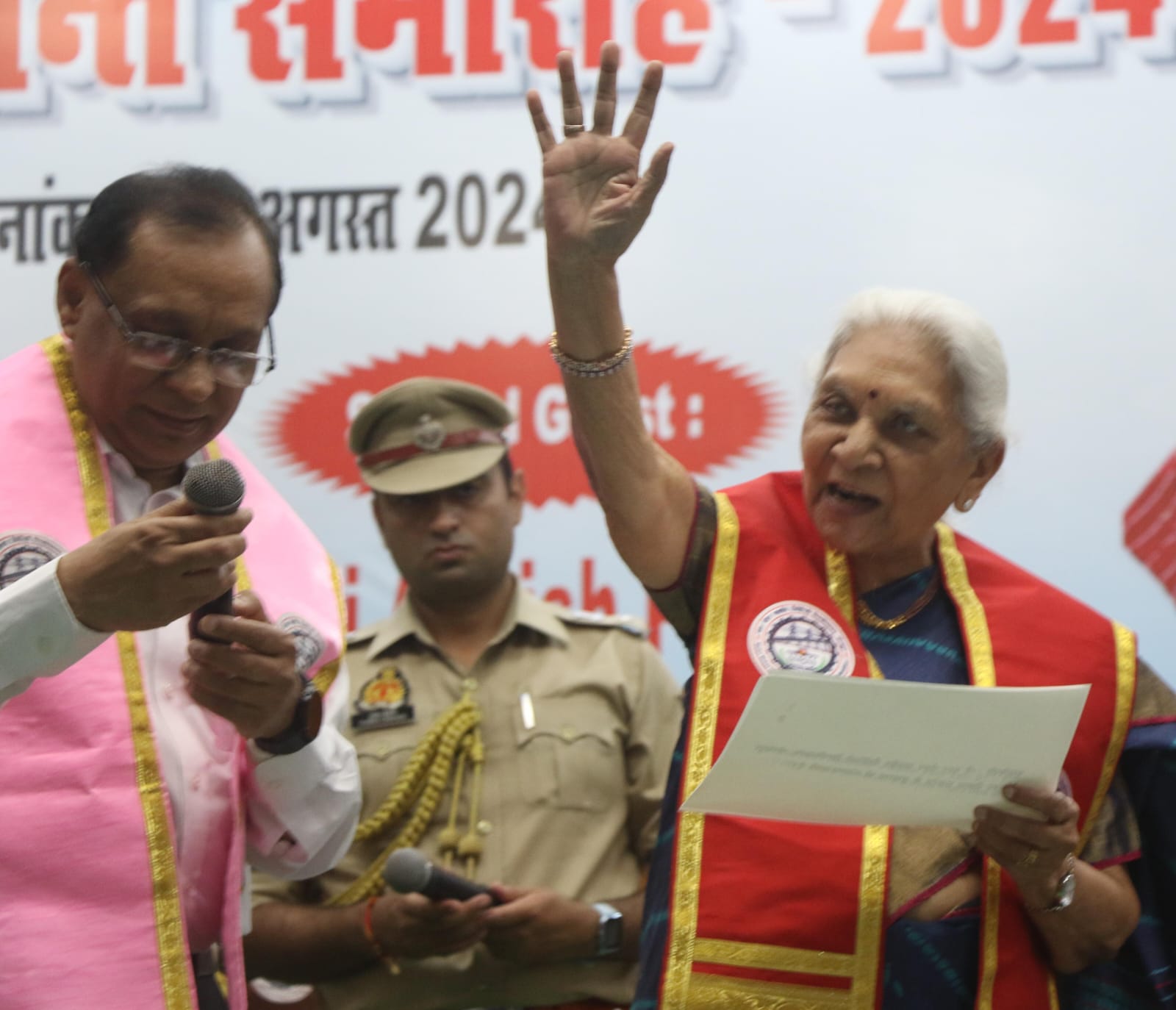 उसके बाद मुख्य अतिथि नंबी नारायणन ने उपाधि प्राप्त करने वालों को देश में अंतरिक्ष विज्ञान के विकास का इतिहास बताया। अंत में कुलाधिपति आनंदीबेन पटेल का संबोधन हुआ। राष्ट्रगान के साथ समारोह का समापन हुआ। कुलाधिपति की अनुमति से जब कुलपति ने समारोह के समापन की घोषणा की तो उसके बाद शुरू हुआ बधाई और फोटो सेशन का दौर। पहले टापरों व उपाधिधारकों ने अतिथियों के साथ फोटो सेशन कराया। उसके बाद परिवार व साथियों के साथ तस्वीर खिंचवाकर यादगार पलों को सहेज लिया।