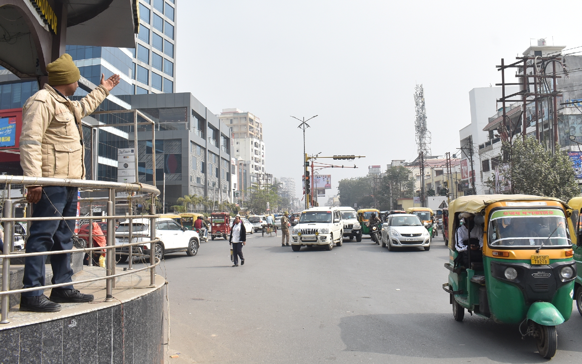 मोहद्दीपुर चौराहे पर ट्रैफिक चलाती यातायात पुलिस। जागरण