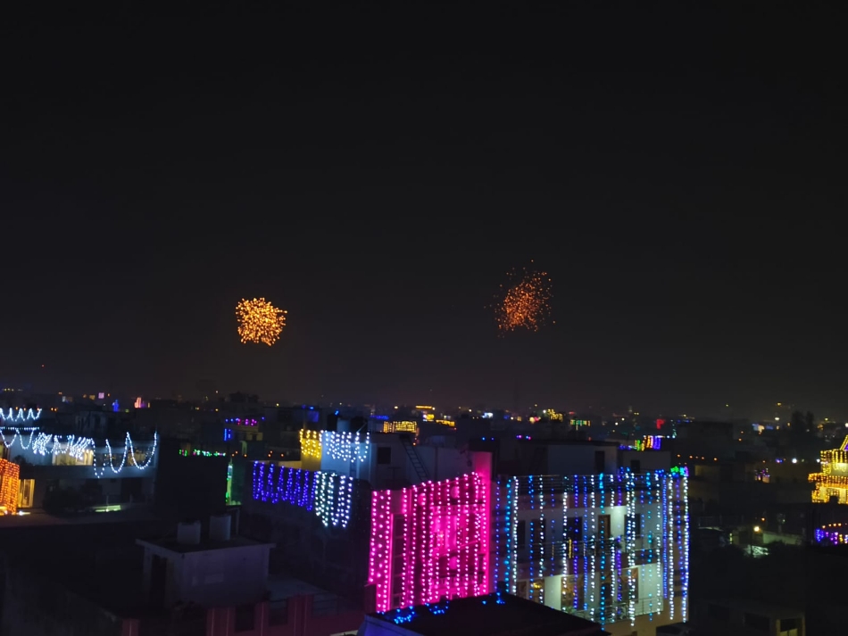 आसमान में दिखी सतरंगी छटा, गणेश-लक्ष्मी की हुई पूजा