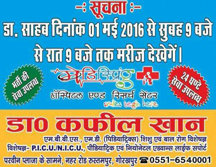 बाबा राघवदास मेडिकल कालेज में पीड्रियाटिक्स विभाग के नोडल अफसर डॉ. कफील खान पर प्राइवेट प्रैक्टिस करने का आरोप लगाया गया है। वैसे डॉ कफील दो साल पहले ही संविदा पर तैनात हुए थे। छह महीने पहले ही वह असिस्टेंट प्रोफेसर बने थे, जिसके बाद उन्हें इंचार्ज बनाया गया था।
