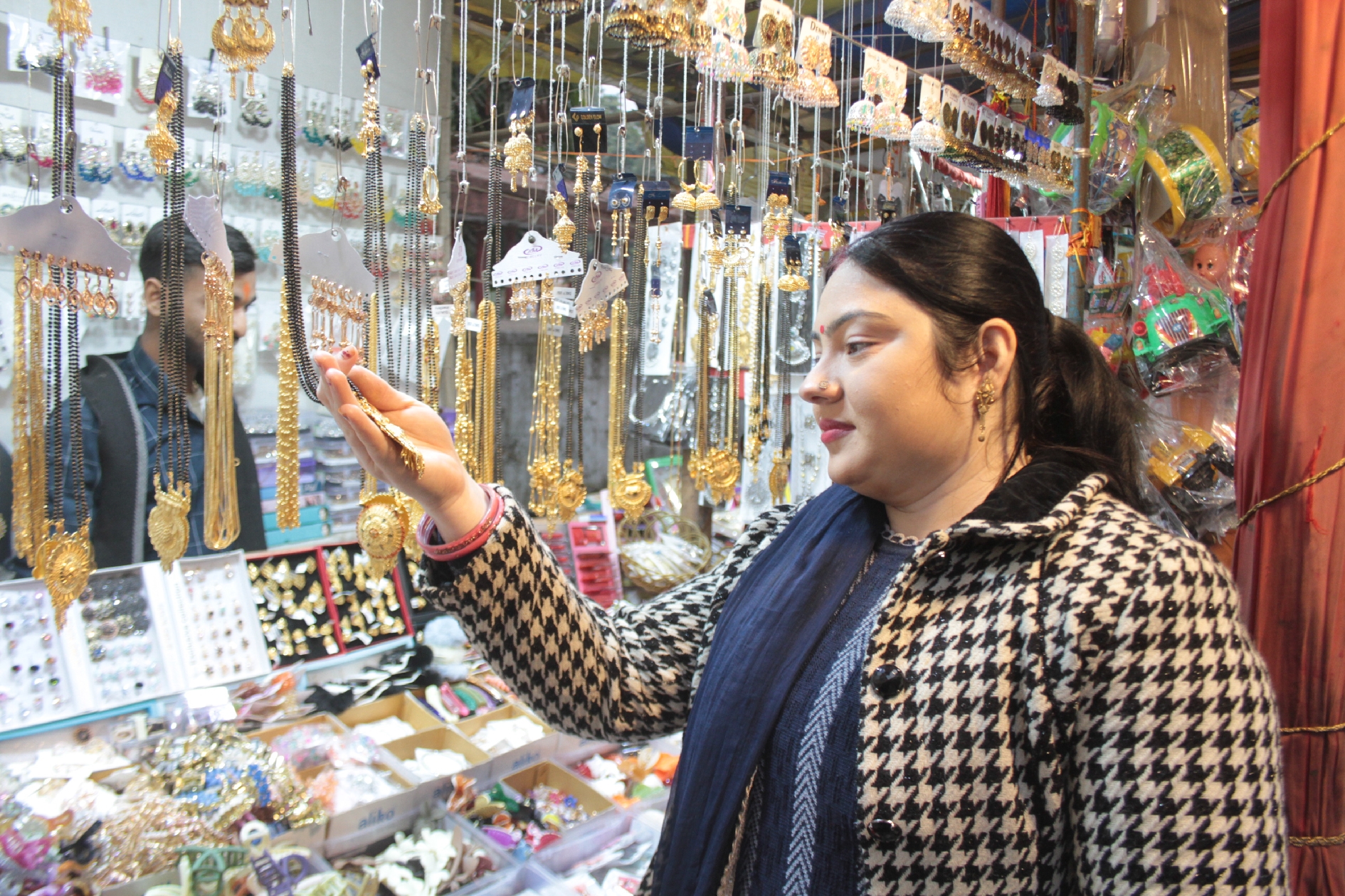 गोरखनाथ मंदिर परिसर में खिचड़ी मेला की तैयारी अंतिम चरण में है। बच्चों तथा महिलाओं को आकर्षित करने वाली दुकानें सज चुकी हैं। श्रृंगार सामग्री की खरीदारी करती महिला। अभिनव राजन चतुर्वेदी