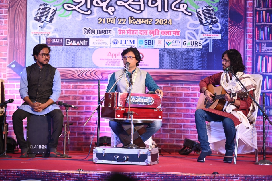 गोरखपुर लिटरेरी फेस्ट में कविता का संगीतमयी प्रस्तुति करते कलाकार।