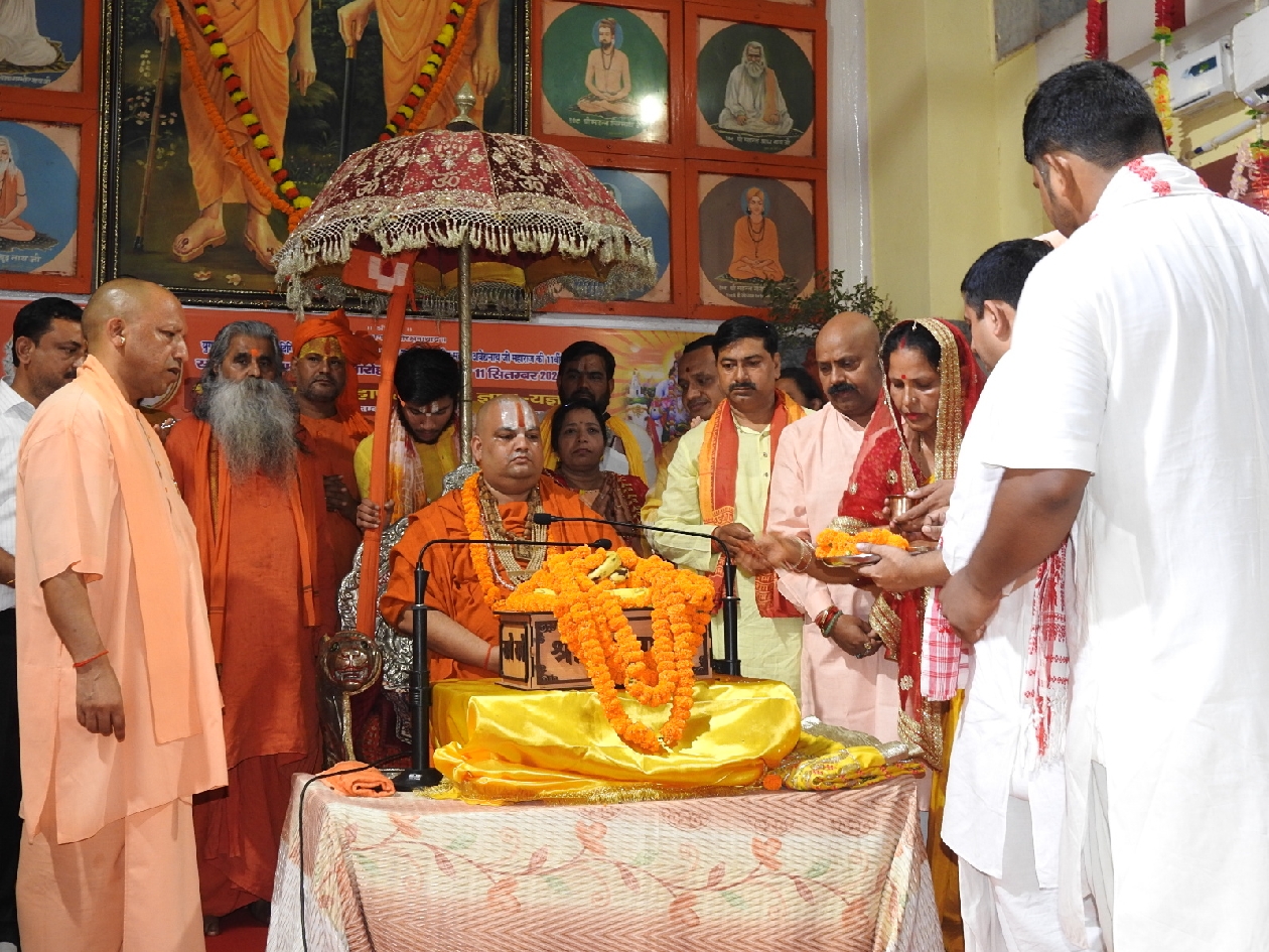 शोभायात्रा के कथा स्थल पहुंचने पर योगी आदित्यनाथ ने अखंड ज्योति स्थापित की। पोथी प्रतिष्ठा और कथा व्यास के विराजमान होने के बाद उन्होंने व अन्य यजमान ने व्यासपीठ की पूजा की। इस अवसर पर गोरखनाथ मंदिर के प्रधान पुजारी योगी कमलनाथ, ब्रह्मचारी दासलाल जी महाराज, काशी से आए जगद्गुरु संतोष दास उर्फ सतुआ बाबा, देवीपाटन के महंत मिथिलेश नाथ, महंत धर्मदास, रामनाथ, राम मिलन दास, रामलखन दास, गंगादास, भरतदास, रुद्रनाथ, भोलानाथ, मनीष दास, कालीबाड़ी के महंत रवींद्र दास आदि मौजूद रहे। पूजन कार्य संस्कृत विद्यापीठ के वेदाचार्य डा. रंगनाथ त्रिपाठी ने कराया। कार्यक्रम का संचालन डा. श्रीभगवान सिंह ने किया।
