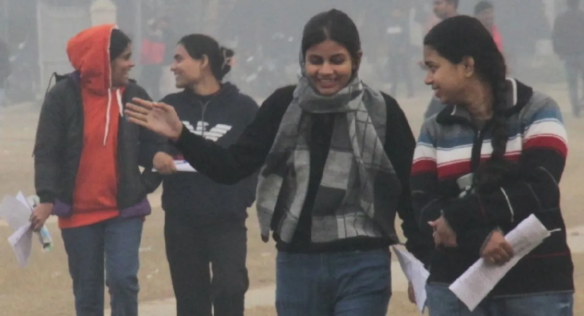 ठंड का असर छात्रों पर दिखायी दे रहा है। गर्म कपड़ों के साथ गोविवि की छात्राएं। जागरण