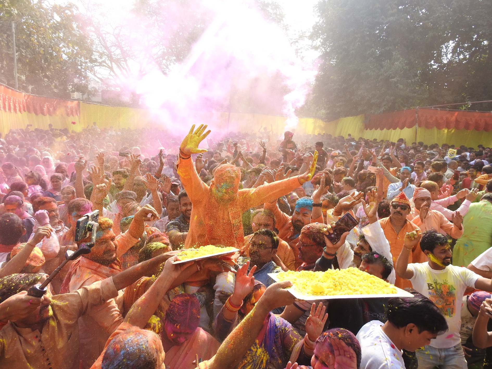यात्रा जिधर से गुजरती, पूर्व से ही रंग की व्यवस्था कर बैठी महिलाएं व बच्चे छत से लोगों के ऊपर रंग फेंकते थे। इस दौरान कोई भी कोरा नहीं बच पाया था। भक्त प्रहलाद का जयघोष गूंज रहा था। यात्रा में भक्त प्रहलाद, मसाने की होली, राधा-कृष्ण, शिव-पार्वती, महाकाल की झांकी आकर्षण का केंद्र रही।