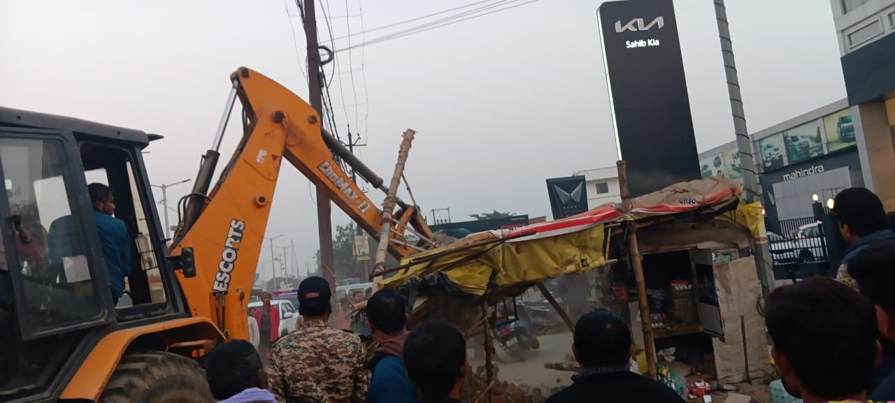 ट्रांसपोर्टनगर-नौसढ़ रोड पर अतिक्रमण हटाती नगर निगम टीम- जागरण