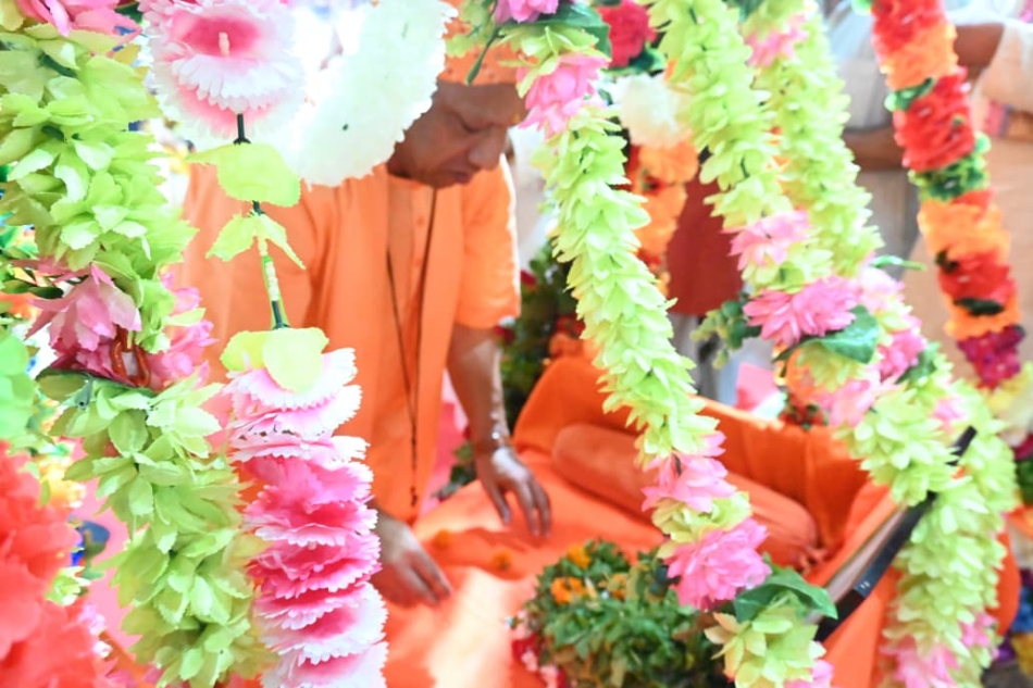 मुख्यमंत्री योगी ने मंदिर के गर्भगृह में विधि-विधान से जन्माष्टमी की पूजा-अर्चना की। उसके बाद बाल कृष्ण को गोद में लेकर गर्भगृह से बाहर आए और पालने में सुलाकर उन्हें झुलाने लगे। यह देख लोग श्रद्धा भाव से आह्लादित हो गए और जय श्रीकृष्ण का जयकारा लगाने लगे।