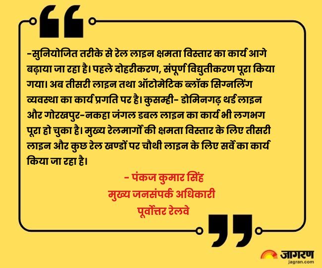 पूर्वोत्तर रेलवे में तीसरी के साथ चौथी लाइन के लिए भी सर्वे शुरू हो गया है। फिलहाल, मुख्यालय गोरखपुर में रेलवे प्रशासन ने तीसरी और डबल लाइन के लिए निर्माण कार्य तेज कर दिया है। गोरखपुर जंक्शन और कैंट के बीच भी निर्माण शुरू हो गया है। धर्मशाला पुल और तरंग क्रासिंग के बीच तीसरी लाइन के लिए कम पड़ रही भूमि का पेच भी लगभग सुलझा लिया गया है। जल्द निर्माण कार्य आरंभ हो जाएगा। गोरखपुर जंक्शन और नकहा जंगल के बीच भी निर्माण शुरू हो गया है।