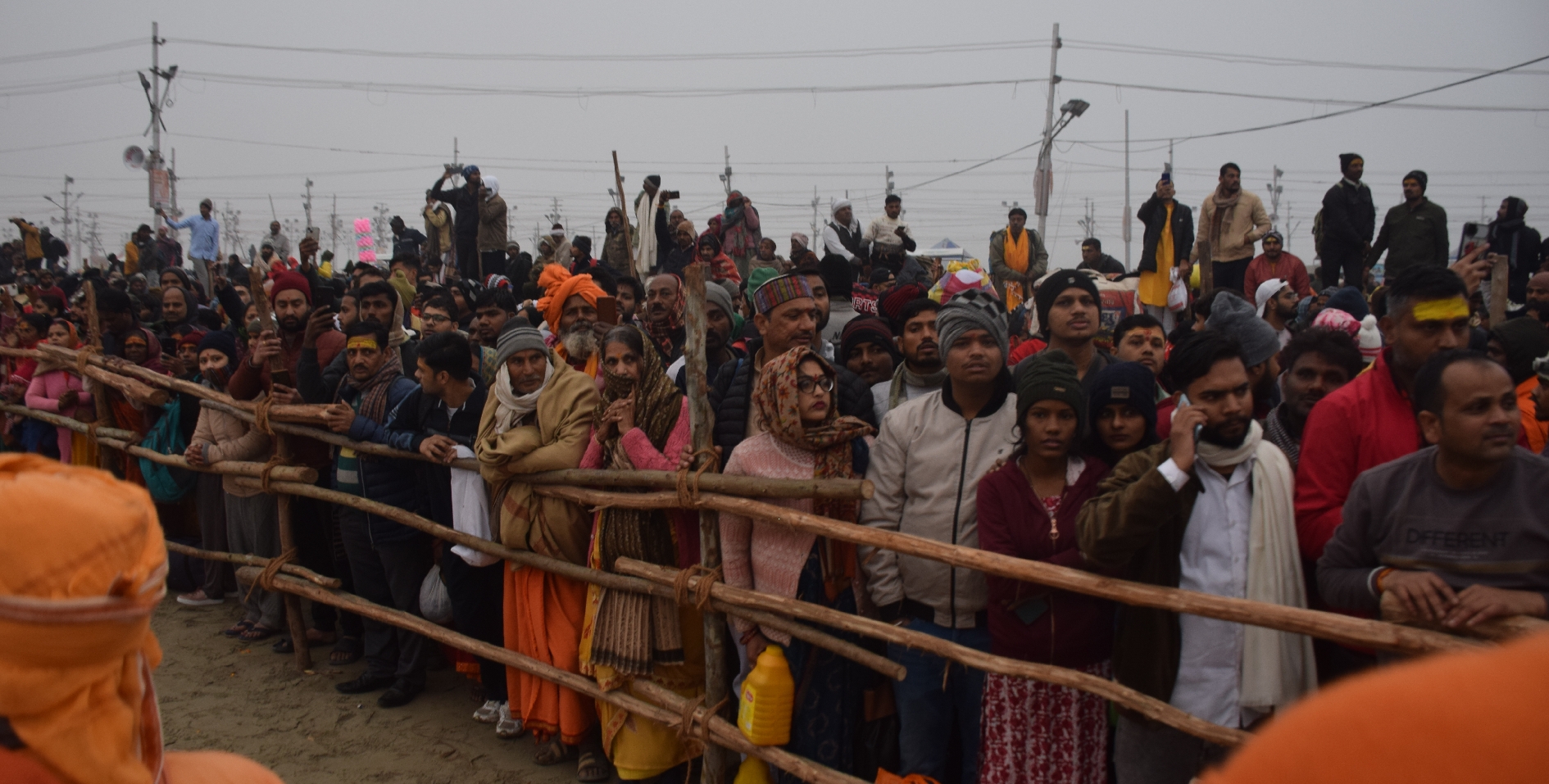 Maha Kumbh 2025:संगम तट पर अमृत स्नान करने जाते संतों को देखने के लिए खड़े लोग।-रंगनाथ तिवारी।