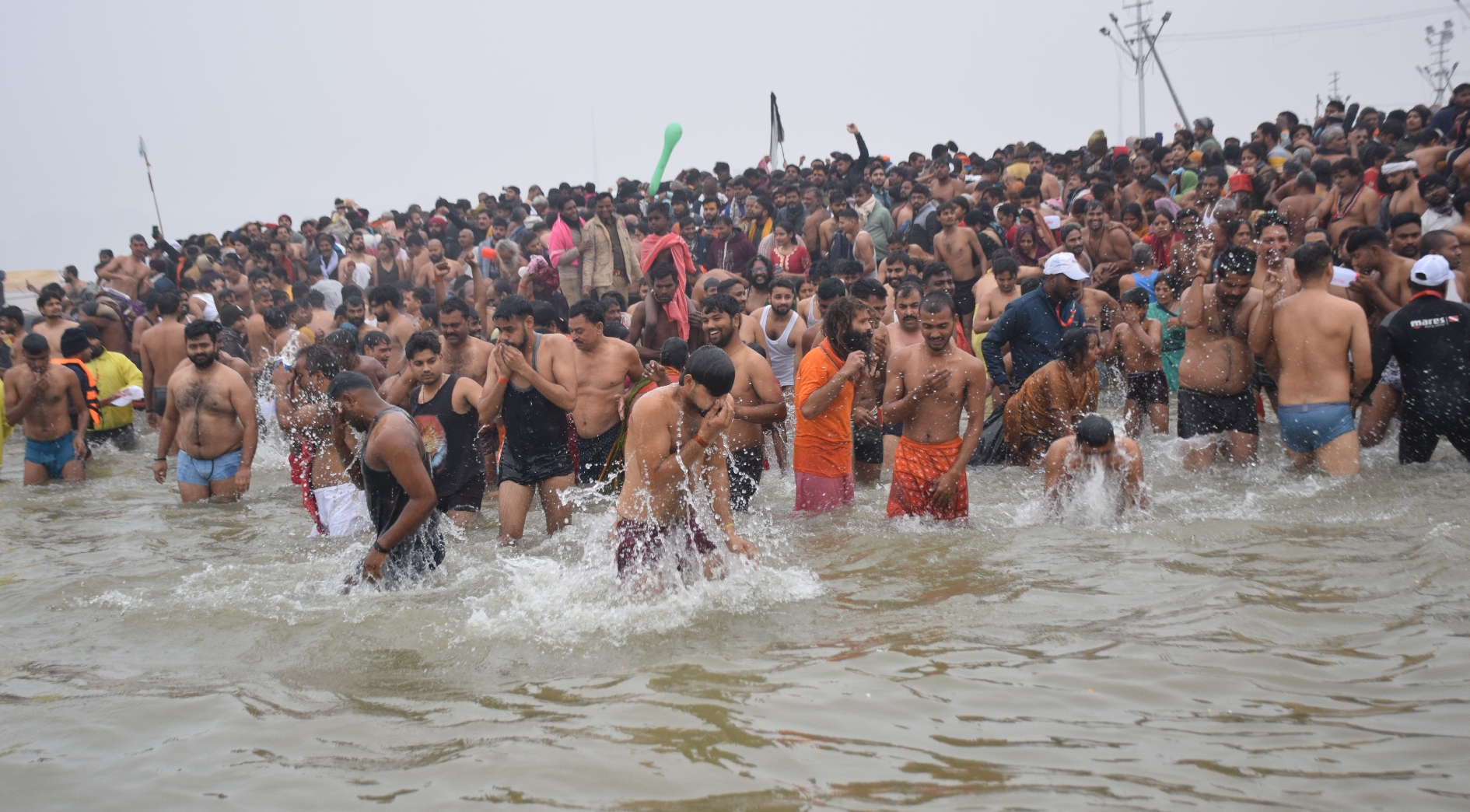 संगम तट पर अमृत स्नान करते श्रद्धालु।-रंगनाथ तिवारी