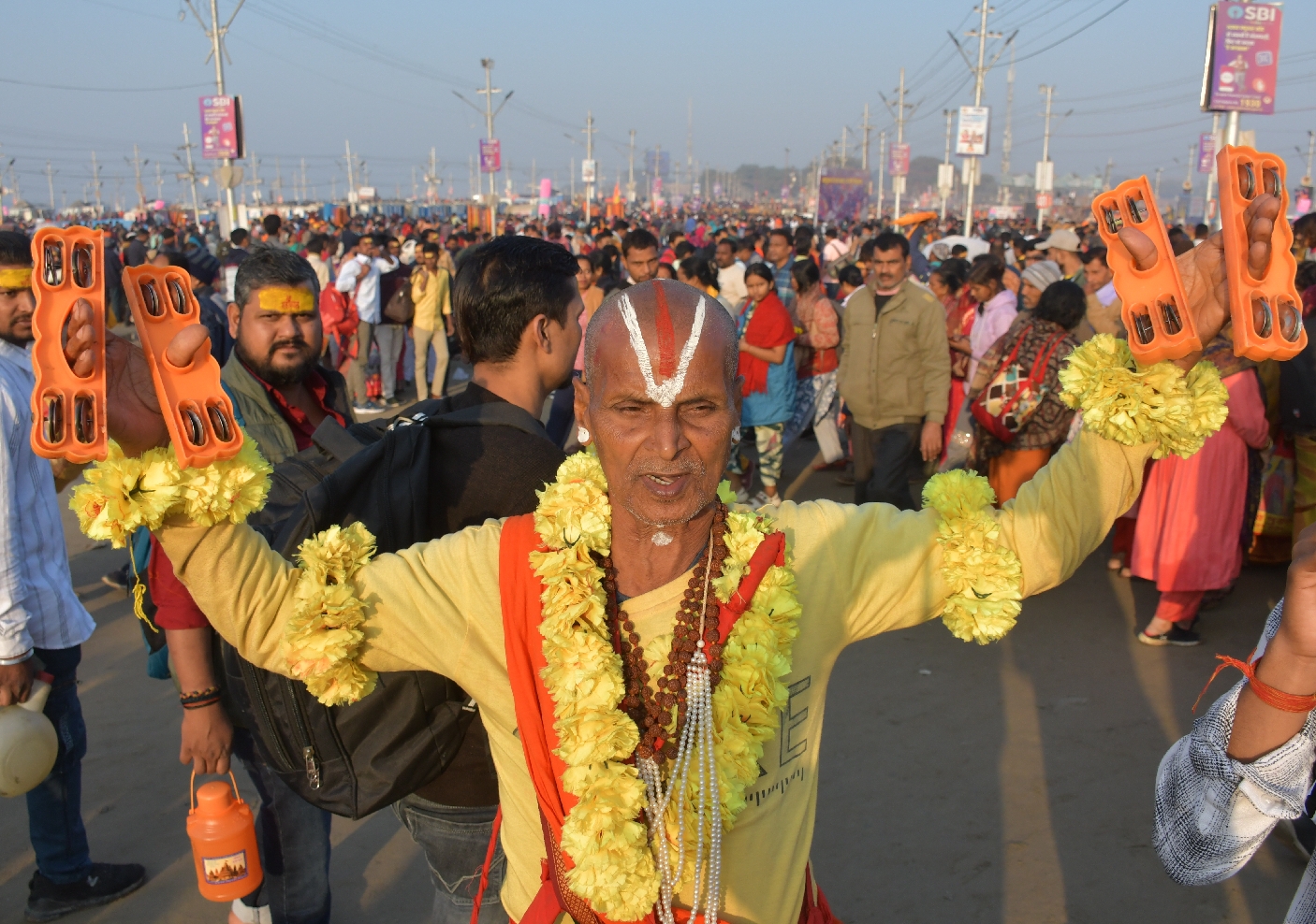 Maha Kumbh मेला में माघी पूर्णिमा स्नान पर्व अक्षय वट मार्ग पर सीता मणि के गगन देव पुरी रामधुन में रमें।-गिरीश श्रीवास्तव