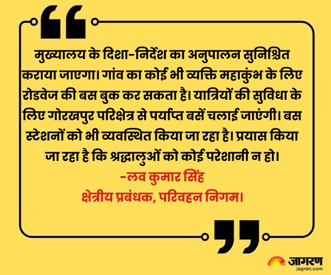 जागरण संवाददाता, गोरखपुर। Maha Kumbh 2025: समूह में महाकुंभ की यात्रा करने वाले गांव के लोगों के लिए राहत भरी खबर है। गांव के प्रधान या कोई भी व्यक्ति परिवहन निगम से 50 श्रद्धालु होने पर रोडवेज की एक बस बुक कर सकता है। बुक की गई बस गांव से नजदीक वाले कस्बे तक पहुंचकर श्रद्धालुओं को बैठाएगी। महाकुंभ पहुंचाने के बाद बस वापस श्रद्धालुओं को कस्बे तक छोड़ेगी।