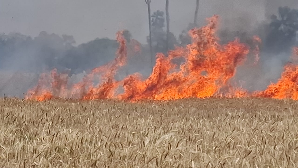 ग्रामीणों ने आग बुझाने का प्रयास किया, लेकिन सफलता नहीं मिली। सूचना पर फायर ब्रिगेड की गाड़ी के साथ पहुंचे कर्मियों ने स्थानीय लोगाें के सहयोग से आग पर काबू पाया। ग्रामीणों का आरोप है कि ऊपर से गुजरे बिजली के तार तेज हवा से आपस में टकराए। उससे निकली चिंगारी ने खेत को जलाकर राख कर दिया।