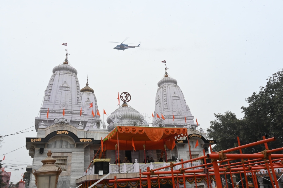 गोरखनाथ मंदिर और श्रद्धालुओं पर हेलिकॉप्टर से की गई पुष्प वर्षा। जागरण