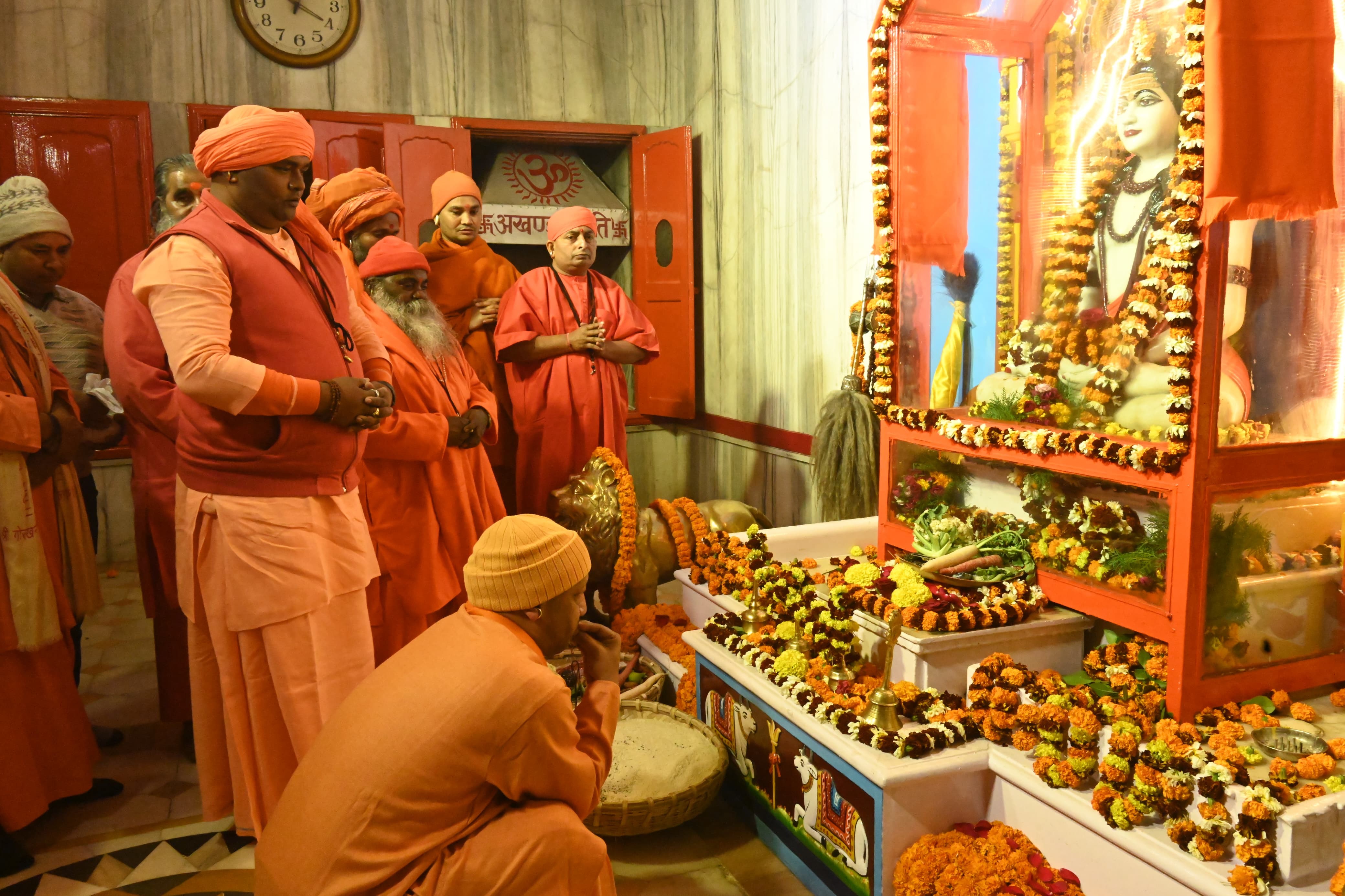 मकर संक्रांति के अवसर पर मंगलवार को तड़के बाबा गोरखनाथ को खिचड़ी चढ़ाने की नाथ पीठ की परंपरा तो पूरी की ही, इसी क्रम में उन्होंने योगिराज बाबा गंभीरनाथ, महंत दिग्विजयनाथ, महंत अवेद्यनाथ और अन्य नाथ योगियों की प्रतिमाओं को खिचड़ी भोग अर्पित किया। इसके लिए वह बारी-बारी से सभी गुरुओं के प्रतिमाओं तक गए और पर्व को लेकर अपनी श्रद्धा निवेदित की।