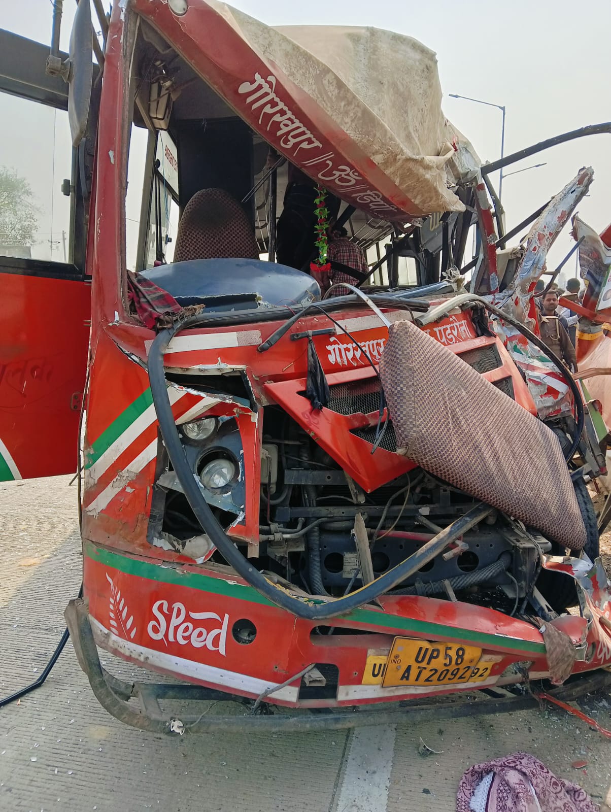 सड़क हादसे में बस के उड़े परखच्चे। जागरण