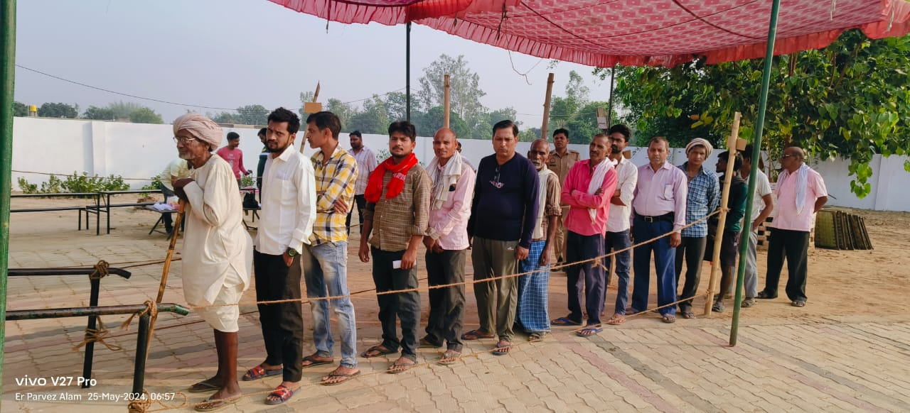 बस्ती के ग्राम पंचायत कठैचा में सुबह सात बजे से पहले ही लाइन में वोट देने के लिए मतदाता खड़े हो गए।
