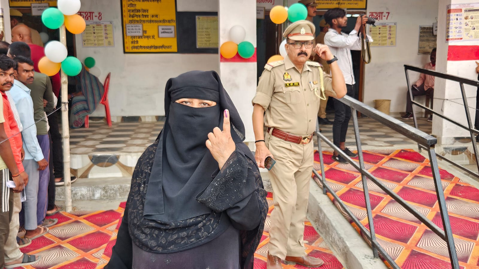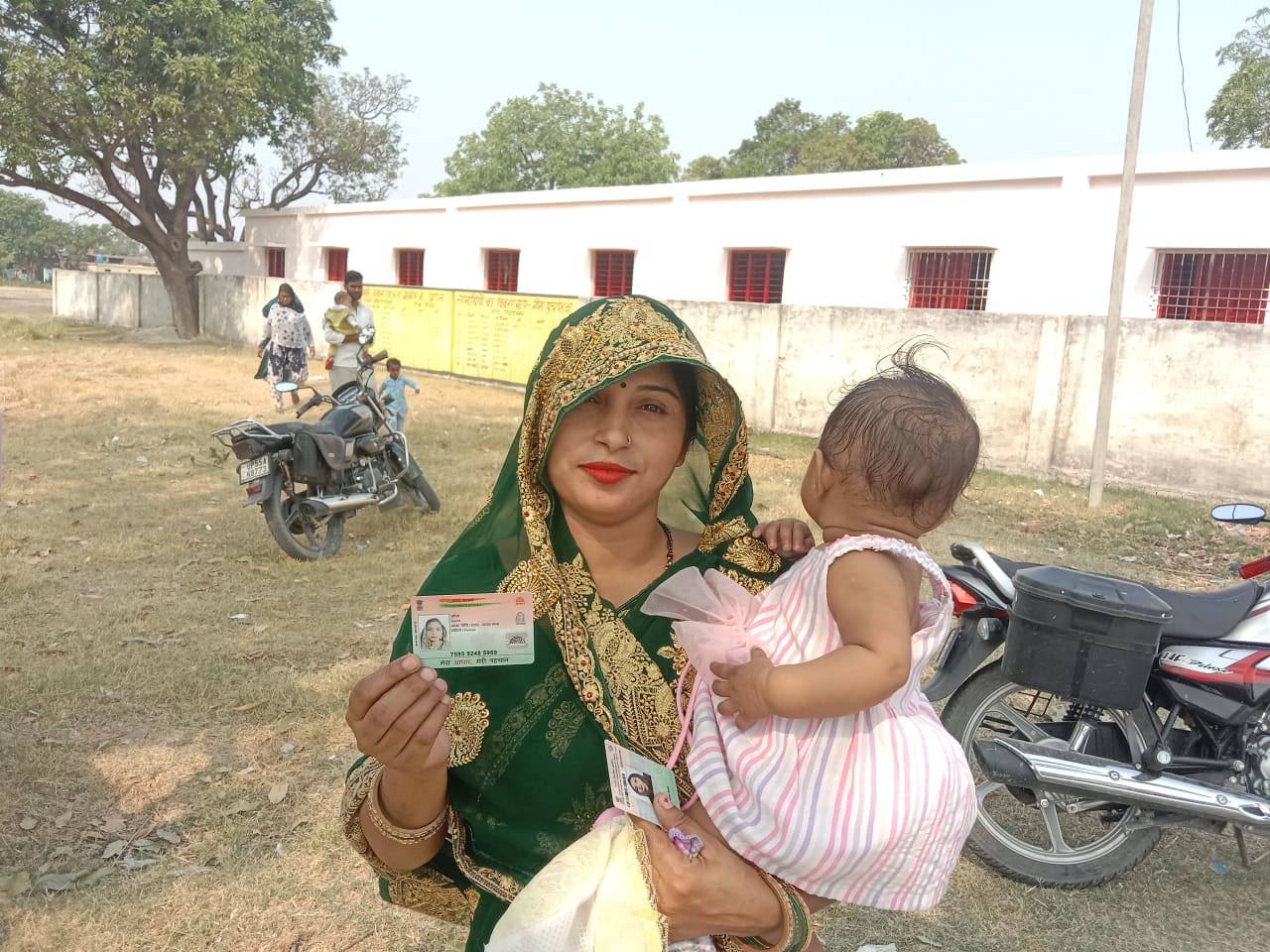 सिद्धार्थनगर जिले में डुमरियागंज लोकसभा में सरिता पत्नी अमरनाथ अपनी दुधमुंही बच्ची को गोद मे लेकर बूथ संख्या 175 पर मतदान के लिए जाती हुई।