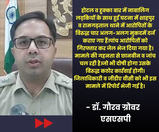 वहीं नाबालिगों के साथ हुक्का बार में हुए सामूहिक दुष्कर्म की घटना में असुरन चौकी प्रभारी विकास सिंह और बीट सिपाही जितेन्द्र कुमार की लापरवाही सामने आने पर एसएसपी ने बुधवार की देर रात दोनों को निलंबित कर दिया। शहर में अनिरुद्ध ओझा ने 2018 में पहली बार मोहद्दीपुर में हुक्का बार की शुरुआत की थी। लेकिन स्थानीय विरोध के चलते उसने पैडलेगंज और बाद में फ्लाई इन होटल को अड्डा बना लिया।