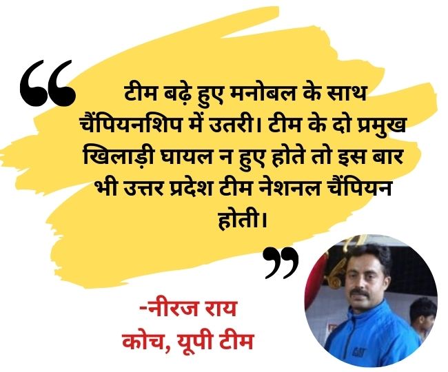 नीरज ने उत्तर प्रदेश टीम की सफलता का श्रेय निदेशक माध्यमिक शिक्षा, सचिव माध्यमिक शिक्षा, प्राचार्य राज्य विद्यालयी क्रीड़ा संस्थान व पर्यवेक्षक विनोद कुमार सिंह, धर्मेंद्र सिंह व मोहम्मद नईम को दिया। उत्तर प्रदेश टीम ने सेमीफाइनल में पंजाब को 3-1, क्वाटर फाइनल उत्तराखंड को 3-1 से, प्री क्वाटर फाइनल में तमिलनाडु को 3-1 से पराजित किया।