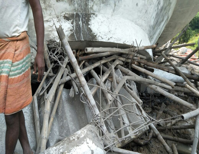 सिद्धार्थनगर जिले के सुनील और अजय ने बोरिंग से टंकी में पानी भरने का काम शुरू किए। टंकी में जैसे ही पानी भर गया तभी वह भरभराकर गिर गई। उसके पास मौजूद दोनों मजदूर घायल हो गए। एक मजदूर के पैर में सरिया धंस गया और दूसरे के सिर में गंभीर चोट लगी है।