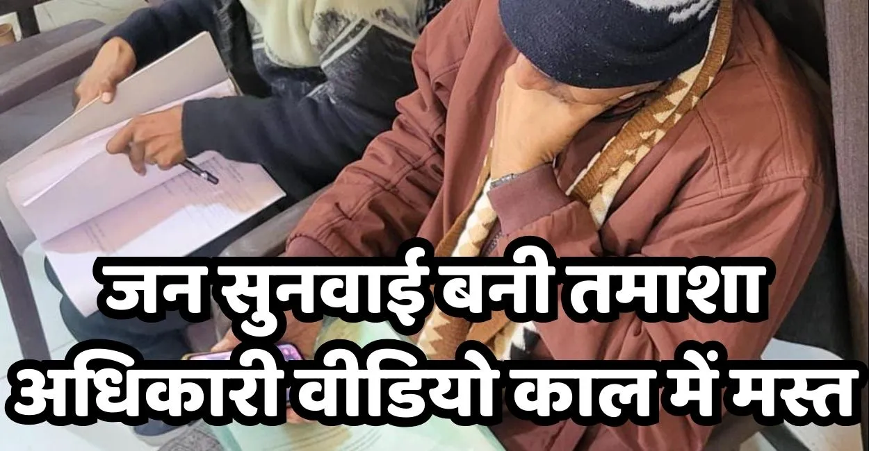 फरियादियों की शिकायतों के निस्तारण के लिए राठ तहसील सभागार में आयोजित संपूर्ण समाधान दिवस में जहां जिलाधिकारी घनश्याम मीना और पुलिस अधीक्षक डा.दीक्षा शर्मा फरियादियों की शिकायतें सुनने में लगे रहे। वहीं एक अधिकारी अपनी पत्नी से वीडियो काल पर व्यस्त नजर आए।