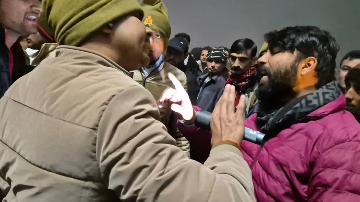 पुलिस से उलझते हुए हंगामा करने वाले युवक।