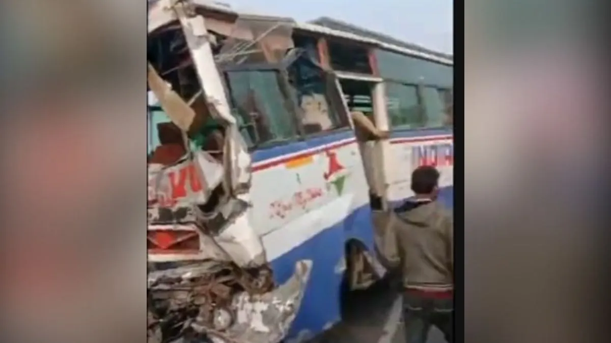 हरदोई में हाईवे पर ट्रक और बस की आमने-सामने टक्कर, 10 यात्री घायल